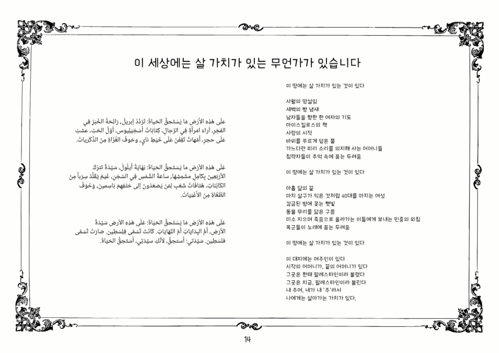 これは詩のタイトルで、「この世界には生きるに値する何かがある」という訳です。