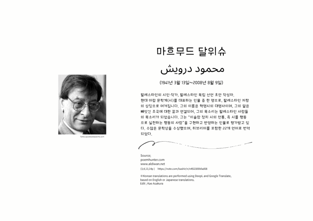 パレスチナの国民的詩人、マフムード・ダルウィーシュの架空の詩集を作ってみました。