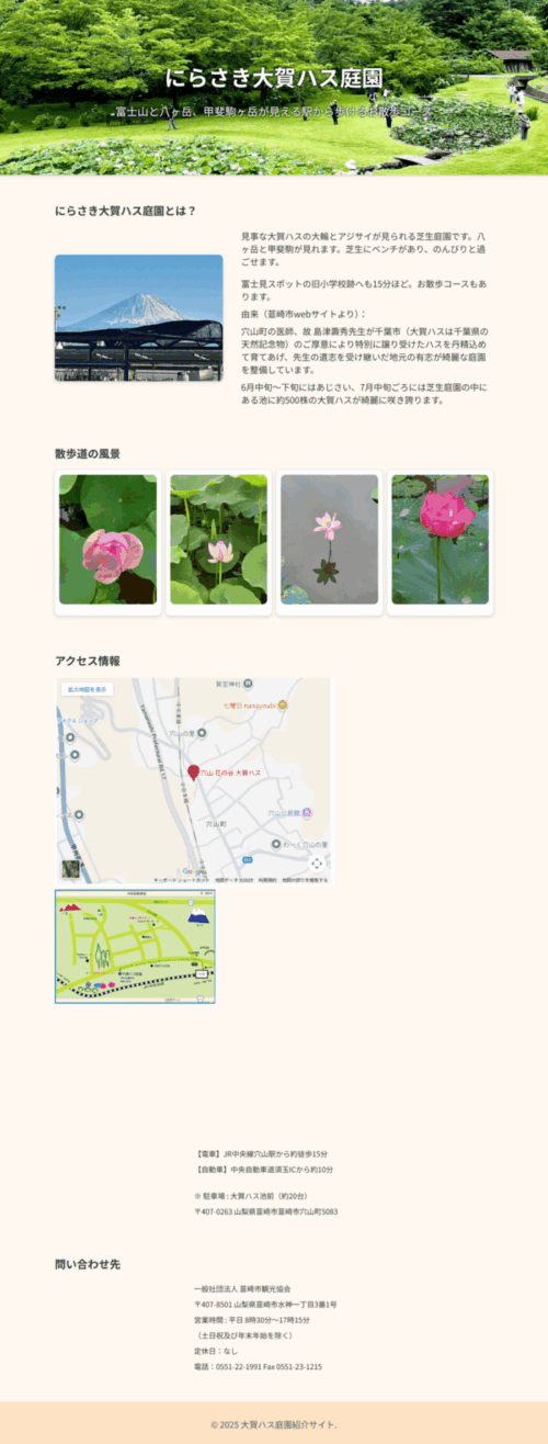 テーマは、にらさき大賀ハス庭園の案内ページを作成です。